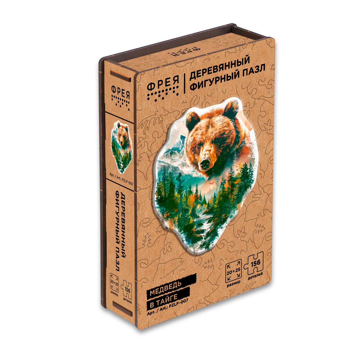 " ФРЕЯ" PZLF- 007 Пазл фигурный деревянный " Медведь в тайге" 156 элемент.